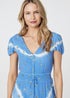 Izabel London Blue Tie Dye Print Shirred Tie Waist Midi Dress