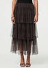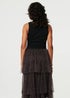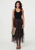 You can't go wrong in a ruffled midi skirt. This one has an elasticated high waist, with tummy-flattering ruches to flatter your figure. It's made from lightweight semi sheer mesh materials for a feminine, elegant look. The tiered mesh will look eye-catching and effortlessly cool with every step you take. Wear this skirt with heeled boots and tuck in a t-shirt for a smart-casual look.