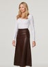 Izabel London Brown Faux Leather High Waist Midi Skirt