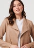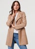 This soft jacket is perfect for staying warm and looking glamorous. It's made from a comfortable faux suede material and has a relaxed, open front fit. The wide collar and thigh length fit flatter all figures, and it even has handy pockets on the front. It also has long sleeves and can be layered over a thick jumper for extra warmth.