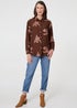 Izabel London Brown Floral Stitch Detail Long Sleeve Shirt