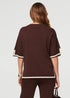 Izabel London Brown Floral Trim Top & Trousers Co-Ord Set