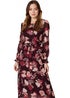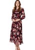 Izabel London Burgundy Floral Long Sleeve A-Line Dress