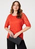 • Izabel London Coral Floral Lace 3/4 Sleeve Relaxed Blouse