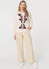 Izabel London Cream Embroidered Print Drop Shoulder Jumper