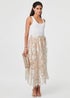 Izabel London Cream Floral Embellished High Waist Midi Skirt