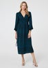 Izabel London Green Animal Print Long Puff Sleeve Midi Dress
