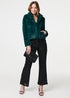 Izabel London Green Faux Fur Cropped Long Sleeve Jacket
