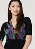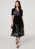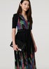 Izabel London Green Feather Print Faux Wrap Front Midi Dress