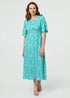 Izabel London Green Floral Flare Sleeve Midi Dress