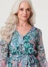 Add a printed dress to your capsule wardrobe with this standout layered skirt style. It has a v-neck, long sleeves with shirred cuffs, a self-tie belt, button front detail and a tiered short skirt. Team with casual flat shoes or block heels for an effortlessly sophisticated look.