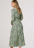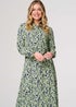Izabel London Green Printed Long Sleeve Midi Shirt Dress