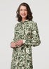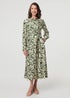 Izabel London Green Printed Long Sleeve Shirt Midi Dress