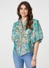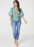 Izabel London Green Printed Puff 1/2 Sleeve Shirt