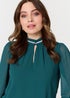 Izabel London Green Sparkle Trim High Neck Semi Sheer Blouse