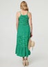 Izabel London Green Striped Ruched Texture Tiered Midi Dress