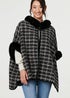 Izabel London Grey Faux Fur Lined Oversized Poncho