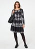 Izabel London Grey Printed Knee Length Long Sleeve Dress