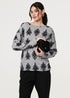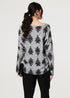 Izabel London Grey Printed Long Batwing Sleeve Relaxed Top