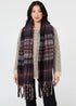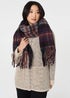 Izabel London Grey Tartan Print Oversized Fringed Scarf