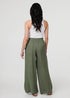Izabel London Khaki Button Detail Wide High Waist Trousers