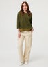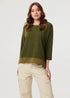 Izabel London Khaki Contrast Hem Relaxed 3/4 Sleeve Jumper