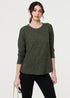 Izabel London Khaki Relaxed 3/4 Sleeve Button Detail Top