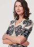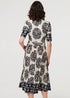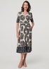 Izabel London Navy Border Print Ruched V-Neck Midi Dress