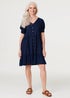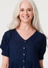 Learn moreGet some effortless style in this laid-back dress with short puff sleeves, a v-neck and buttons. It's made from embossed 100% viscose material with a stylish textured finish. The knee length hem looks casual and cool paired with simple sandals in the daytime.