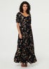 Izabel London Navy Floral Bardot Shirred Empire Maxi Dress