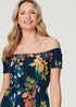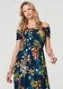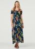 Izabel London Navy Floral Bardot Side Split Maxi Dress
