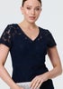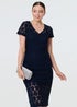 Izabel London Navy Floral Lace Layer Slim Knee Length Dress