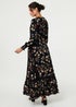 Izabel London Navy Floral Long Sleeve Lace Trim Maxi Dress