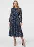 Izabel London Navy Floral Print Semi Sheer Midi Dress