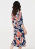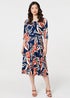 Izabel London Navy Floral Ruched 3/4 Sleeve Midi Dress