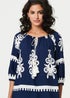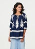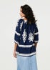 Izabel London Navy Ikat Print Tassel Tie Neck Blouse