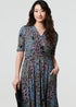 Izabel London Navy Leaf Print Faux Wrap Midi Dress