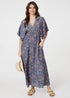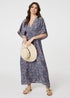 Izabel London Navy Paisley Print Kimono Sleeve Midi Dress