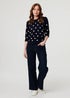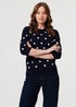 Izabel London Navy Polka Dot Print 3/4 Sleeve Slim Jumper