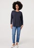 Izabel London Navy Relaxed 3/4 Sleeve Button Detail Top