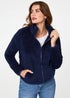 Izabel London Navy Soft Texture Zip Front High Neck Fleece