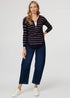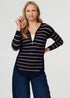 Izabel London Navy Striped Zip-Neck Textured Knit Top