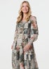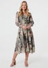 Izabel London Olive Patchwork Print Tie Waist Midi Dress
