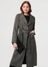 Izabel London Olive Suedette Tie Waist Longline Trench Coat