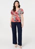 Every body type will be flattered by this elegant peplum shape top. It has short sleeves, a faux wrap shape and a flared cropped hem - for the perfect tummy-flattering effect on your silhouette. It has a v-neck for a laid-back, summery look. Wear it with shorts or a skirt on the summer months, and simply trade sandals for heels for an evening-ready look.