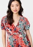Izabel London Orange Ditsy Floral Faux Wrap V-Neck Top