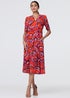 Izabel London Orange Tropical Print Faux Wrap Midi Dress