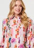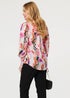 Izabel London Pink Abstract Floral Long Puff Sleeve Shirt