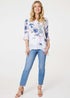 Izabel London Pink Floral 3/4 Flare Sleeve Curve Hem Top