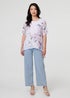 Add a soft floral print to your wardrobe with this layered blouse. It has a round neck, 1/2 sleeves, an asymmetric layered hem detail dropping to thigh length, a relaxed fit and a longline silhouette. Made from a viscose mix fabric it's both lightweight and breathable. Pair with your favourite skinny jeans or leggings and fresh white trainers for a chic off-duty style.